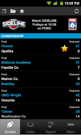 In addition to scores, this app features each segment from the FOX6 Sideline broadcast archived throughout the season, plus special features.