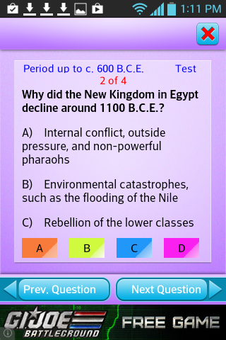 The most exhaustive content you will ever find in an APP. Over 1,000 concepts and questions with answer explanations in World History!!!