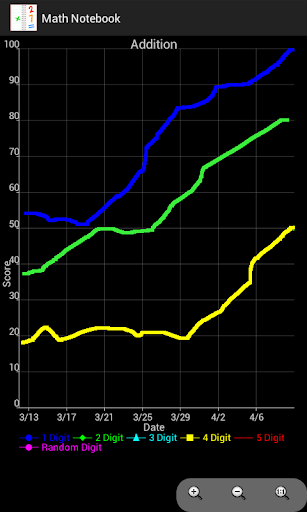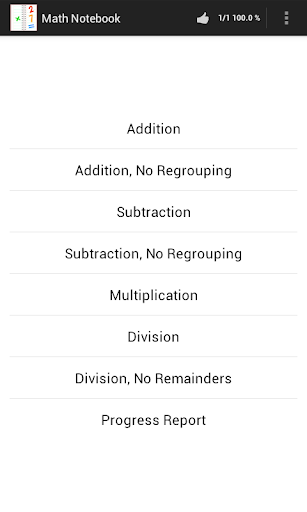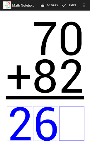 Math Notebook with Handwriting for elementary school students. Addition, subtraction, multiplication and division are supported. The latest neural network handwriting recognition engine allows you to write answers instead of pressing buttons. If you make mistakes, just overwrite numbers in the boxes. You can control difficulty of questions by changing minimum and maximum digits of operands or disabling regrouping. You can monitor progress with charts.