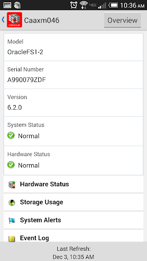 Monitor all your Axiom and Oracle Flash Storage systems from anywhere! FS Mobile is a monitoring tool that helps administrators monitor Axiom and Oracle Flash Storage systems via smart phone. FS Mobile provides monitoring of the health status of single- or multiple Axiom and Oracle Flash Storage systems. The user is able to quickly and easily view the status of their systems, and if there are problems can quickly drill down to pinpoint the hardware problem areas. FS Mobile also provides basic monitoring of IO and capacity statistics to help give initial insight into performance and resource usage on the Axiom and Oracle Flash Storage systems. FS Mobile complements the desktop FS System Manager which can then be used to provide the next level of more detailed information.