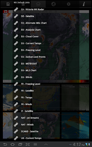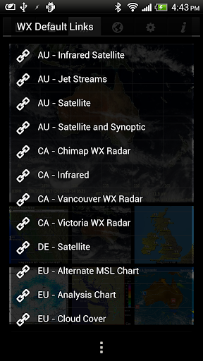 * Display online WX (Weather) Images (e.g. doppler radar, cloud cover, satellite, etc.).