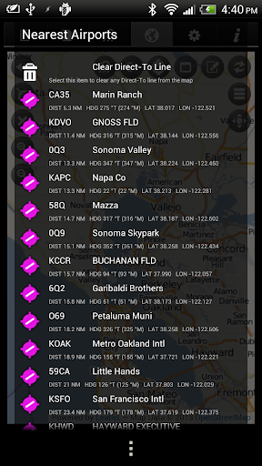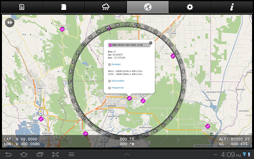 * Waypoints can be tapped to reveal the related data (e.g. lat, lon, ident).