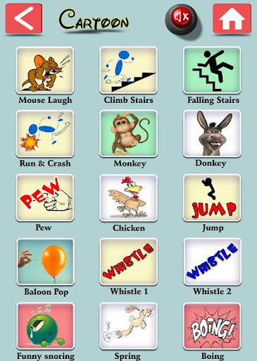 鼠標有趣的笑,有趣的笑,爬上樓梯,樓梯墜落,運行和崩潰,卡通猴子,卡通驢,座位,卡通雞,跳,氣囊彈出,哨子的聲音,有趣的鼾聲,春天,嘣,