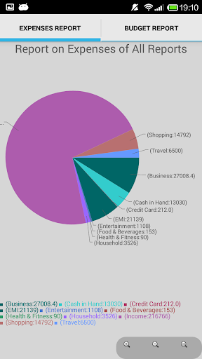 - Single snap shot view of the Percentage spend compared to the total montly income thus helping the user to control the burn rate.
