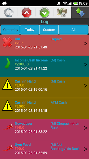 - Logs all expenses & income txn carried out using Debit / credit cards, NEFT Txn in auto mode. User just have to categorize it.