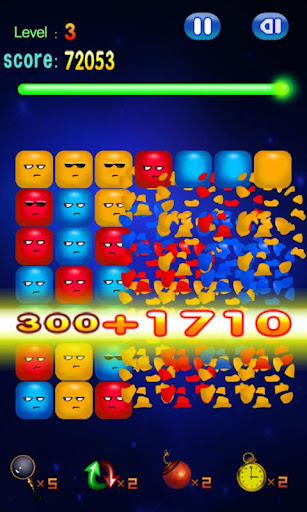 This is a puzzle game. The players need to select some bricks to make them become a rectangle. If the color of four corners is same, the faces on the bricks will disappear. The players must complete this action on time. When all the bricks have no faces, you can go to the next level.