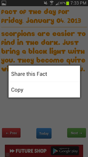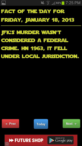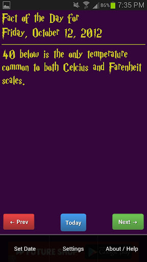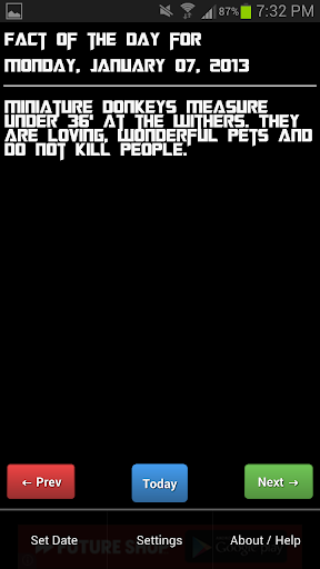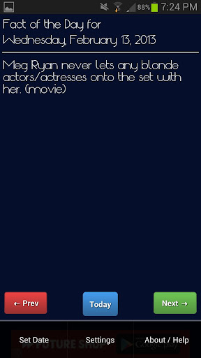 Fact of the Day FREE if you like to read facts and enjoy looking forward to at least one random, useless (but fun) fact a day, then this is your app.