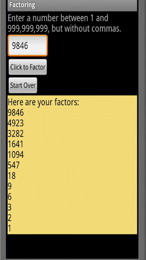 This app factors all of your favorite numbers from 1 to 1 billion. It will provide hours of entertainment for the entire family!