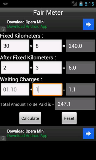 This app allows you to calculate your travel fair based upon the distance, fixed amount per km, variable amount per km and also waiting charges.