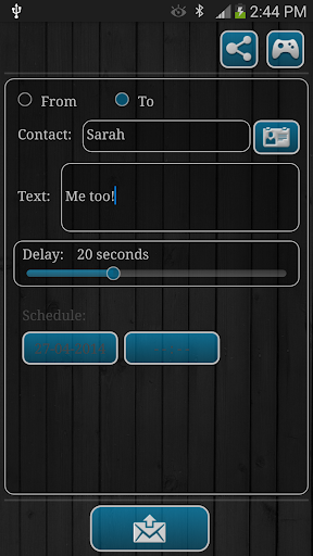 Fake SMS prank allows you to fake entire conversations with people in your contacts list or new names/phone numbers. This application will add text messages to your sms inbox or outbox. You can write anything you want, you will be the author so it is up to your imagination. Pick a contact, set the delay, date or time and send...