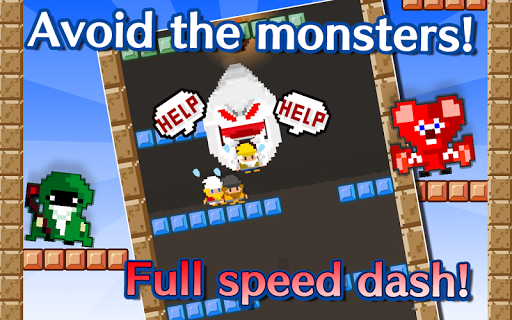 However, to the dwarves' terror, it is not treasure that they find inside, but frightening monsters! Try to escape from the big monster that chases you downward!