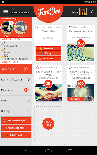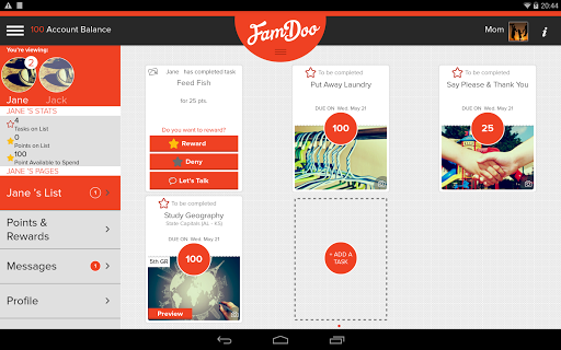The convenient family tool to manage tasks, earn and pay allowance, and teach healthy habits. FamDoo is a points-based system of rewards.
