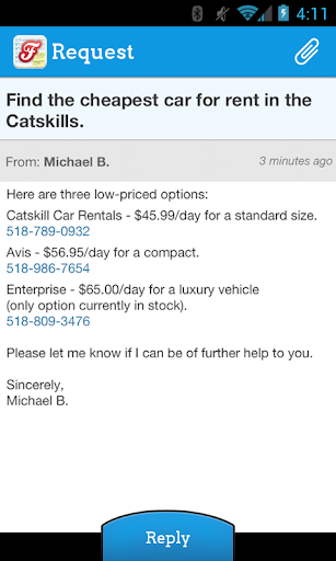 As a member of the service, you can tell us what you need using this free app, and an assistant will start working for you right away.