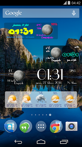 This app let you design your favourite weather widget. Select and customize clock, date, battery level, next alarm, moon phase and your preferred or current location's weather condition.