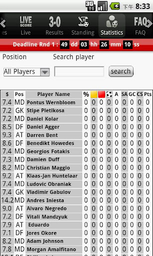-Complete players’ statistics – goals, appearances, substitutions, red/yellow cards, etc