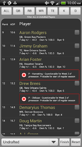 • Fantasy Football Draft Manager with Rank, ADP, Own%, etc. With personal interest levels.
