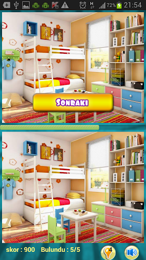 Klasik 2 resim arasındaki farkları bulma oyununun android versiyonu. Oyunun amacı 2 resim arasındaki 5 farkı bulmaktır. Verilen süre zarfında 5 farkı bulduğunuza diğer bölüme geçersiniz ve daha farklı resimler arasındaki farkları bulmaya devam edersiniz. Oyundaki tüm resimler arasındaki farkları bulduğunuza oyun biter. Oyunda zamanlama çok önemlidir. Verilen sürede farkları bulamazsanız oyun başa döner.