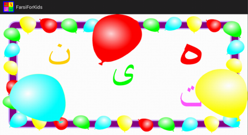 This app helps kids to learn reading in Farsi. It has two sections: Alphabet and Game. In the Alphabet section, Farsi letters with their sounds are shown to kids. After each letter comes a word that starts with that letter along with its picture and the pronunciation. In the Game section, it is asked to find a letter among five shown letters on each screen.