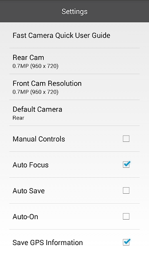 Please note that Fast Camera is compatible with devices running Android 4.0+. The app has been thoroughly tested on dozens of devices. You may find that certain features work slightly differently on your device to how they are described above; if this is the case, it is due to limitations on your device. If you have any questions or need any help using Fast Camera, please email us right away.