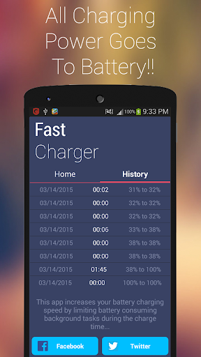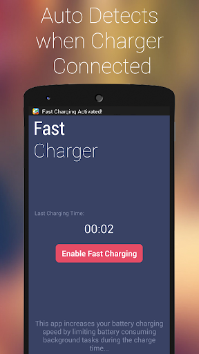 This app minimizes the power consumption of your device while charging and thus boosts the charging speed. It automatically detects when plug the charger and enter the device in to fast charging mode. It will indicate the fast charging mode in notification bar.