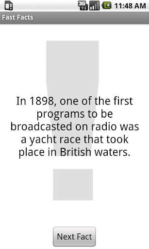 This app contains a collection of more than 750 facts. Contains facts about animals, art & literature, earth & universe, history, inventions, movie & tv, music, politics, religon, sports etc. etc.