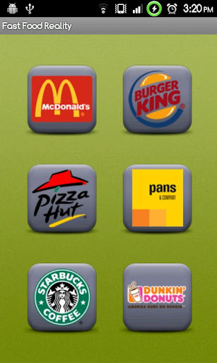 Fast Food Reality is an application to just look for most famous Fast Food Restaurants, like Mc Donald's, Burger King, Dunkin' Donuts, Starbucks, Pizza Hut and Pans and Company.