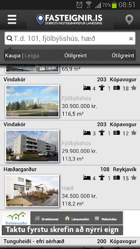 Fasteignir.is einn af stærstu fasteignavefjum landsins er núna aðgengilegur gegnum Android appið.Getur séð allar eignir sem eru til sölumeðferðar á fasteignir.isGötukort sem sýnir fjölda eigna og þína staðsetningu.Leiðarvísir frá þinni staðsetningu að eigninni sem þú hefur áhuga að skoða nánar og margt fleira.