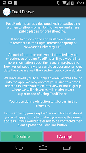FeedFinder has been designed with breastfeeding mothers to provide an easy and convenient tool for finding and sharing good places for breastfeeding. We'll show you on a handy map all of the places near you that have been reviewed by other mothers. We've also carefully designed FeedFinder so that it can be used one-handed as much as possible so that you can even be adding a review of a breastfeeding place as you breastfeed your little one.