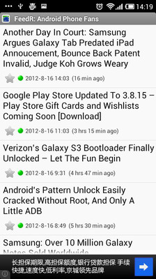 的RSS / Atom新闻阅读器饲料饲料搜索和其他强大的功能配备。简单搜索关键字或网站的名称(例如,“体育新闻”或“CNN”),点击预览,添加和享受的结果!
