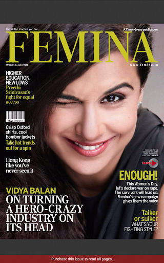 The story of Femina, India's first and most read women's English magazine, reads much like the story of the urban Indian woman. For over 50 years now, Femina has been capturing the essence of the modern woman, and how she has been evolving. Over the years, Femina's readership has grown steadily, with over 60% of its English edition readers being in the age group of 25-45 years and over 76% of its Hindi edition readers being in the age group of 16-45 years. Today, our reader is not 'just' a housewife or 'just' a professional, but she's both & more. And just like our readers, we too have evolved. Today, Femina has an online incarnation: 'www.Femina.in', and with this, Femina aims to reach out to women 24 hours of the day. The website covers a huge bandwidth of topics including Fashion, Relationships, Beauty, Buzz, Health, and Food, and columns like Your Space and Spotlight make it a one-stop-destination for women, online. The website also features user-generated content in the form of tips, communities, forums, polls, contests and other interactive content which add to the experience of the end user