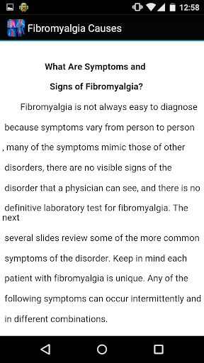 Best comprehensive overview covers the Fibromyalgia Causes. This app has been developed for everyone, all topics has been made to make it useful and interesting.