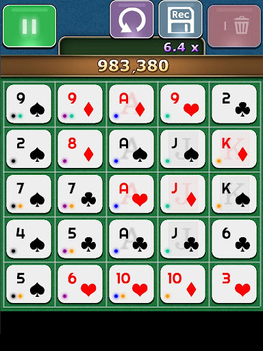 Play Ficards, 5x5 Grid Poker Game where you play to get highest score by composing combination of cards horizontally, vertically, and diagonally.