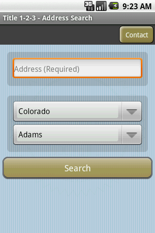 With Fidelity National Title's Title 1-2-3 for Colorado application, real estate professionals can get immediate property information on their Android Device. By entering a property address, owners' name, or parcel number (PIN), Title 1-2-3 for Colorado can provide real time access to valuable property information.