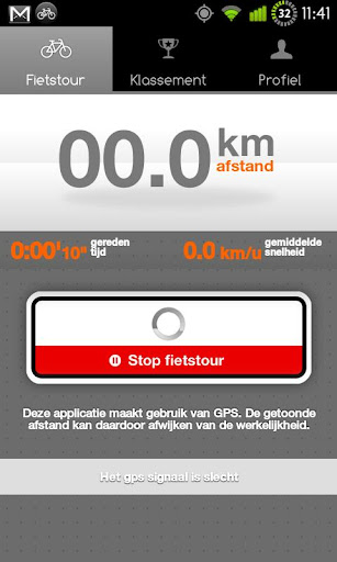 3) Start de applicatie, spring op je fiets en klik "Start fietstour"
