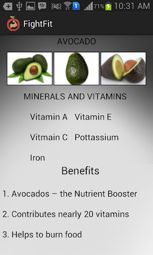Combing BMI and Diet into a single app. Check you BMI and the app tell you your current fat ratio and the kind of food u need to eat to fight your fitness. The application shows you the benefit of eating each food component.
