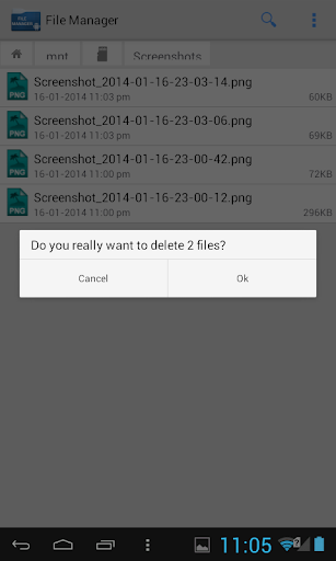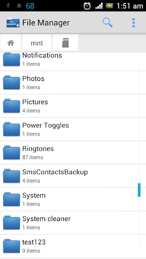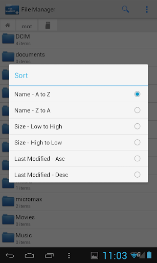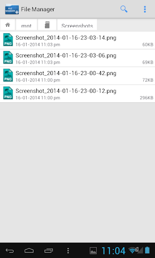 File Manager allows you to browse your SD card, create directories, rename, copy, move, and delete files.