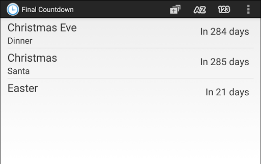 Final Countdown was created to help my wife keep track of which events were approaching by displaying how many days remain. It keeps you excited by "counting down" from today's date until the event. Key features include: