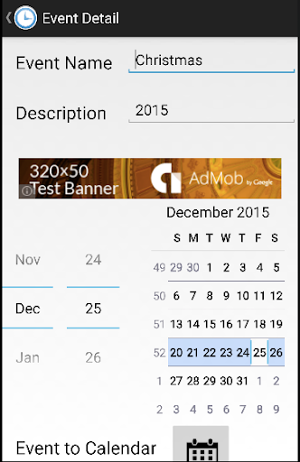 * Delete any events you no longer want to see by swiping left or right on the event. This is created for both tablets and phones.
