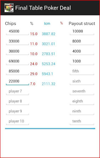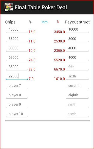 Application for live poker players tournaments, for deal at the final table, with the ICM mathematical model.