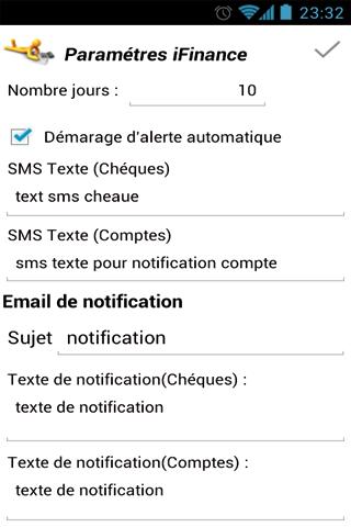 Finance Droid is an application that allows you to manage your credits , borrows and manage your office checks at any time of day or night, regardless of where you are, Finance Droid can give you a detailed balance for each Clients.