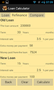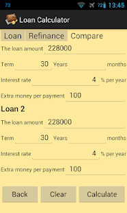 It has calculators for loans, refinance and you can compare two loans, it has a calculator for price, tips and taxes and VAT it has a calculator for percentage and calculator to help you pay your debts.