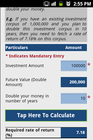 If you like these calculators and would also like to get a computer based application for detailed Risk Profiling and Financial Planning reports, please download our priceless but inexpensive Robust Financial Planner application from www.appsplatter.com