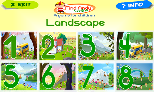 Find Andy Landscape, hidden objects for kids ,is a game for children from about 3 to 6 years old or beginners who want to try the hidden objects games at a very easy level.