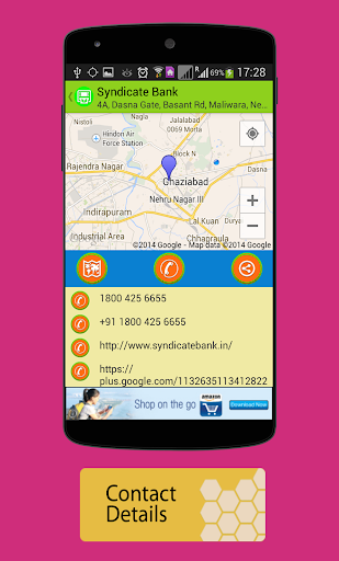 .Provide details such as name, address,local phone number,international phone number, website, Google plus Url for all results with in the app.