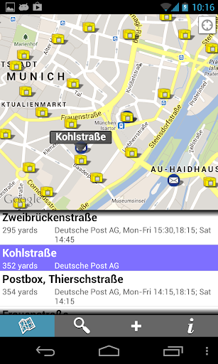 Search for postboxes and post offices around your current location, or look for a mailbox in another area via a simple place name or postcode / zipcode search. Pick the box you want and call up a route map directly to it from your current location. Distances can be displayed in metric or imperial units.