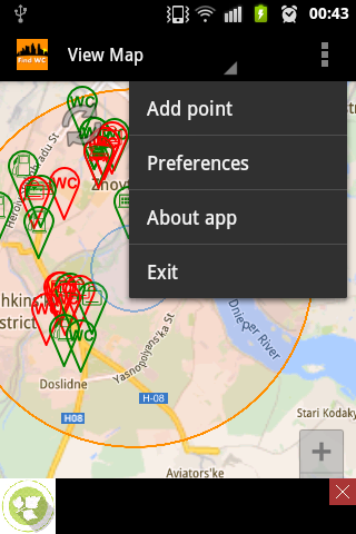 找廁所的應用程序將幫助您隨時找到附近的廁所在一個陌生的小鎮。點顯示在地圖上作為標誌:綠色 - 免費紅 - 支付。你有一個機會,以填補一個數據庫廁所,並且也表明不正確或已經存在的廁所。