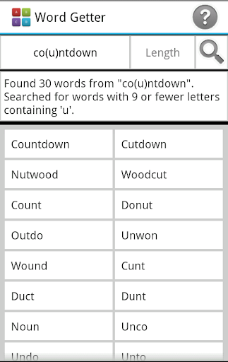 For Countdown/Boggle/Anagram/Scrabble type puzzles, simply enter the letters you have and Word Getter will find the words that can be made from those letters.