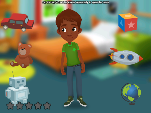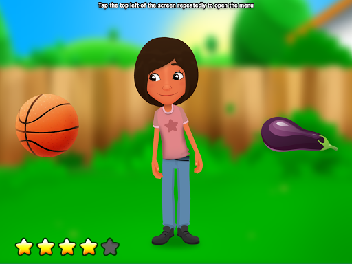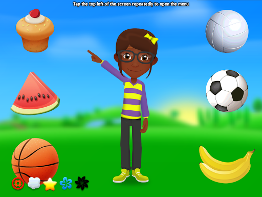 Your child will be asked to select the object that the character is pointing or looking at. As the levels progress, more objects will appear on the screen.