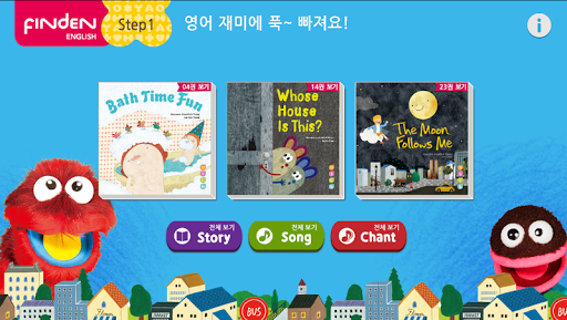 Finden English STEP1의 스토리북 중, 세 권의 스토리북 관련 영상을 App으로 담았습니다. 스토리 애니메이션, 스토리 송, 스토리 챈트를 경험할 수 있습니다.