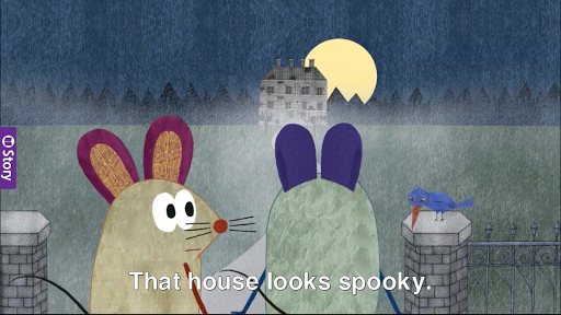 (3) 자막 버튼: 자막을 보면서 스토리 애니메이션을 감상할 수 있습니다.